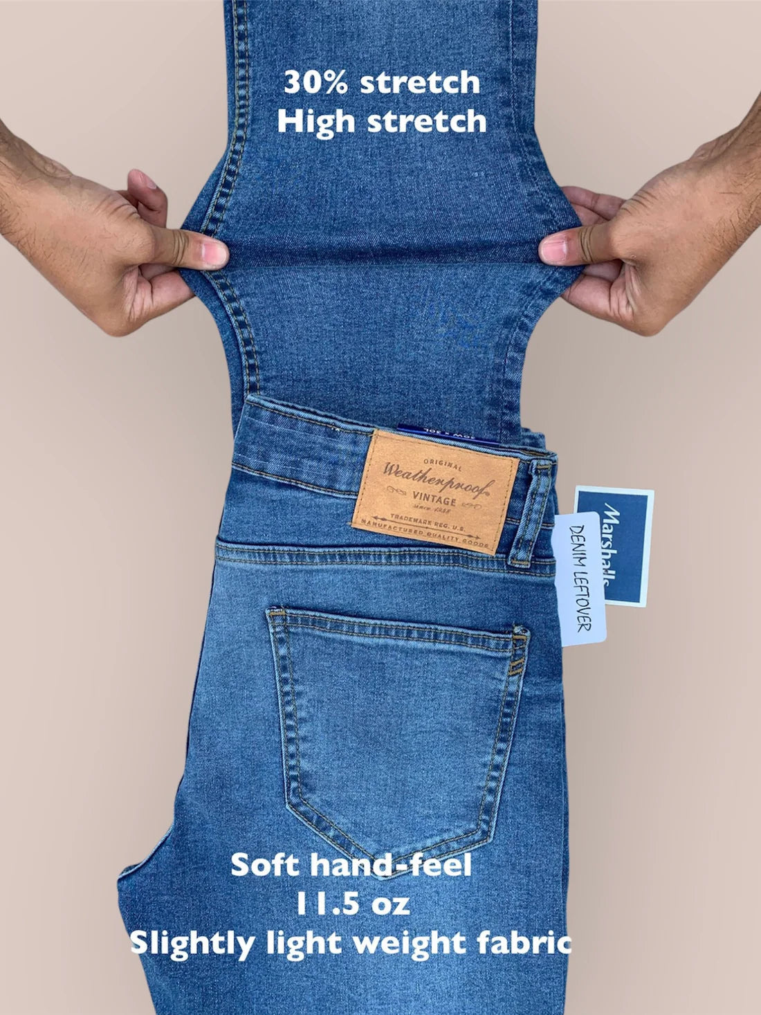 We give a 6-month warranty on all our jeans. It covers fit problems like loose waist, wrong size, hard fabric, or damage from normal use. If you have any problem, just email or contact us with your order ID and some photos. We will replace it or give you store credit. This warranty doesn’t cover damage from wrong use, accidents, or bad washing.