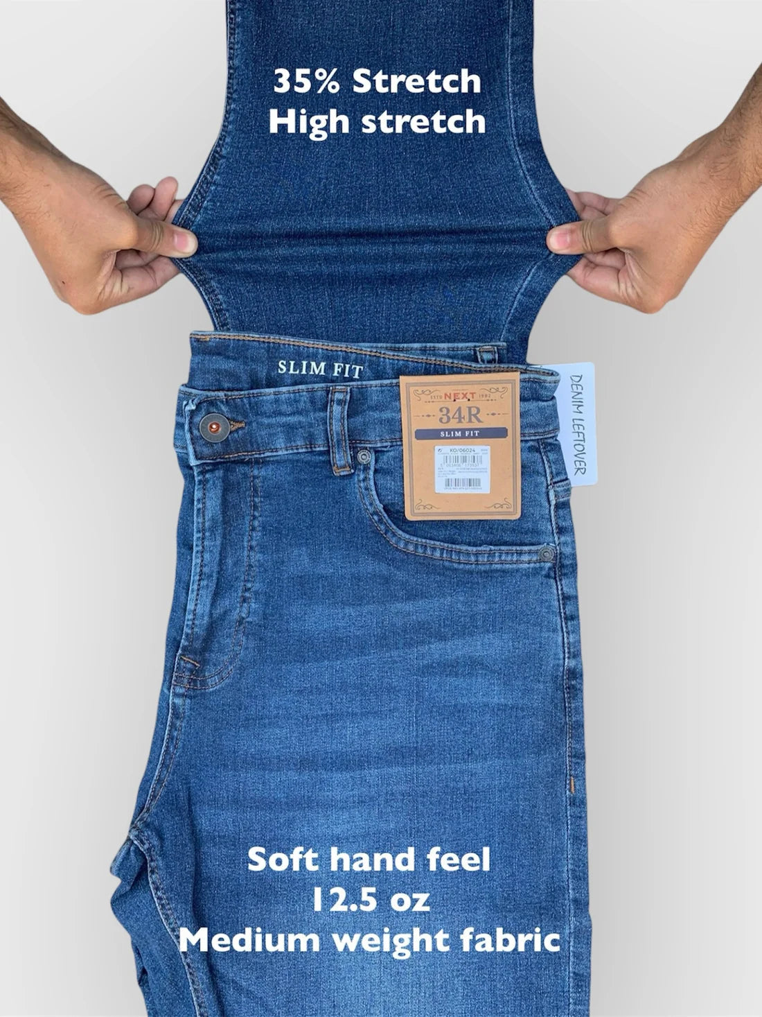 Original Branded Denim Jeans | Medium Blue Wash | Straight Fit | High-Stretch 35% Flex | Soft Hand-Feel | Classic 5-Pocket Design | Zip Fly | 12.5 oz Medium-Weight Denim Fabric